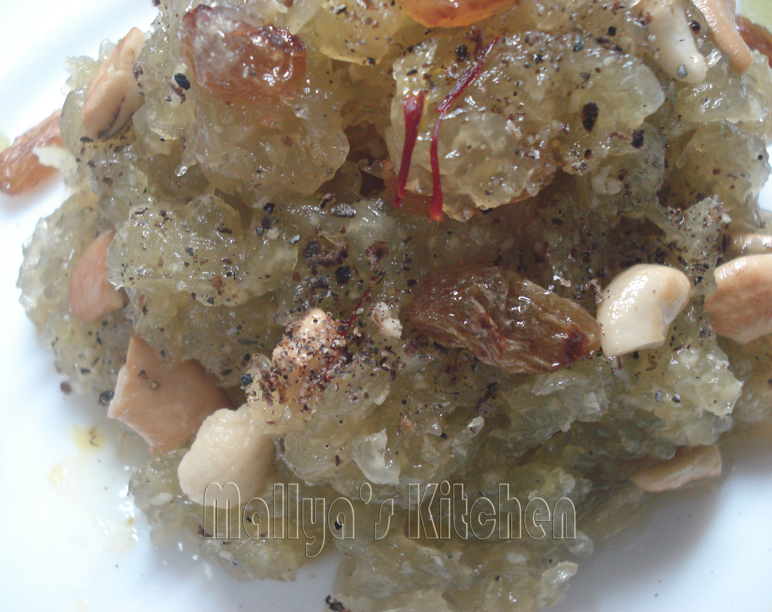 - Mix cardamom powder, fried nuts and saffron (soaked in little milk) after removing from the fire.