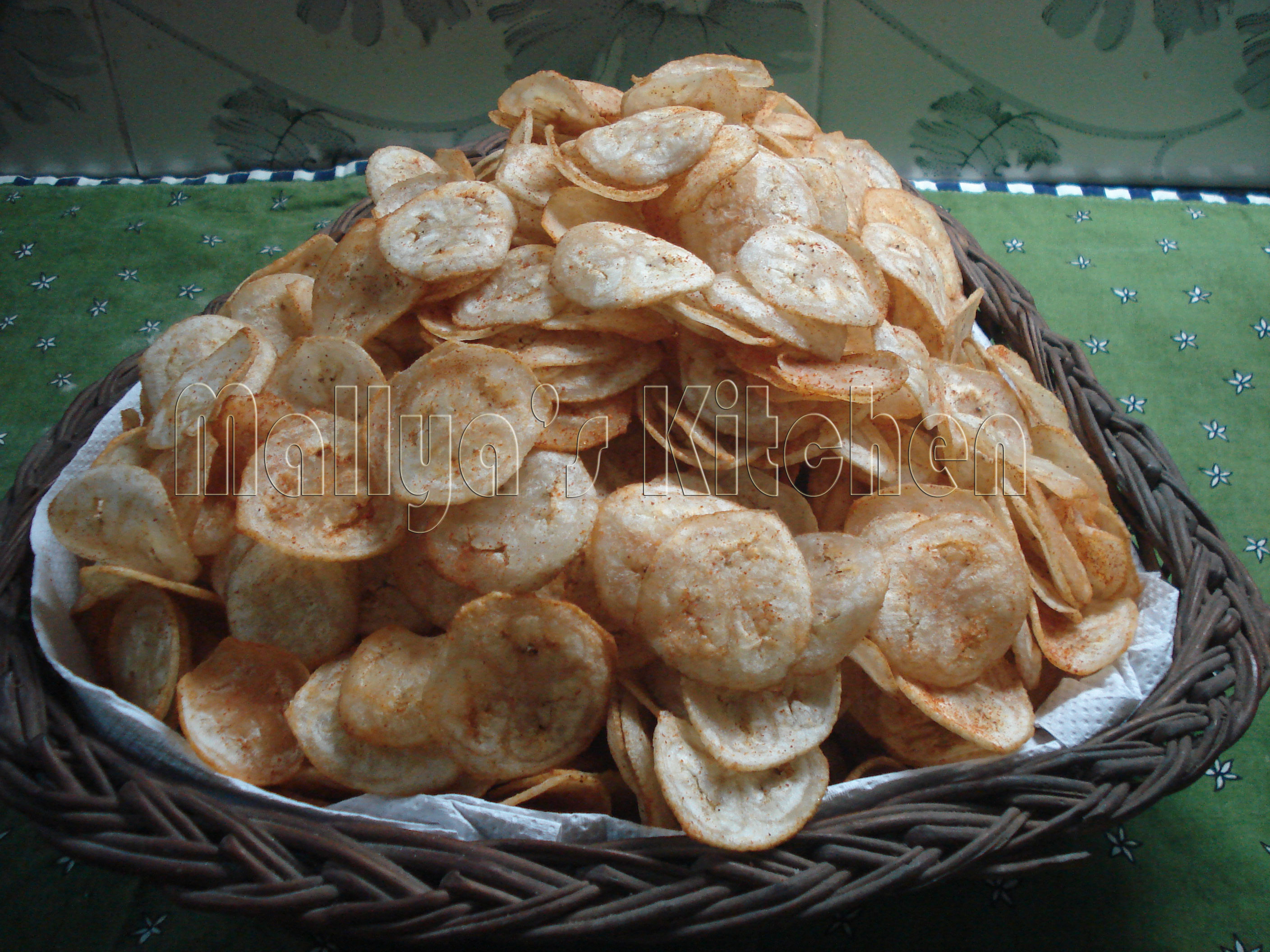 - Once sure they are crisp use a strainer to take the chips out and place them on an absorbent paper to drain the excess oil off.Sprinkle masala powder when chips are still warm.