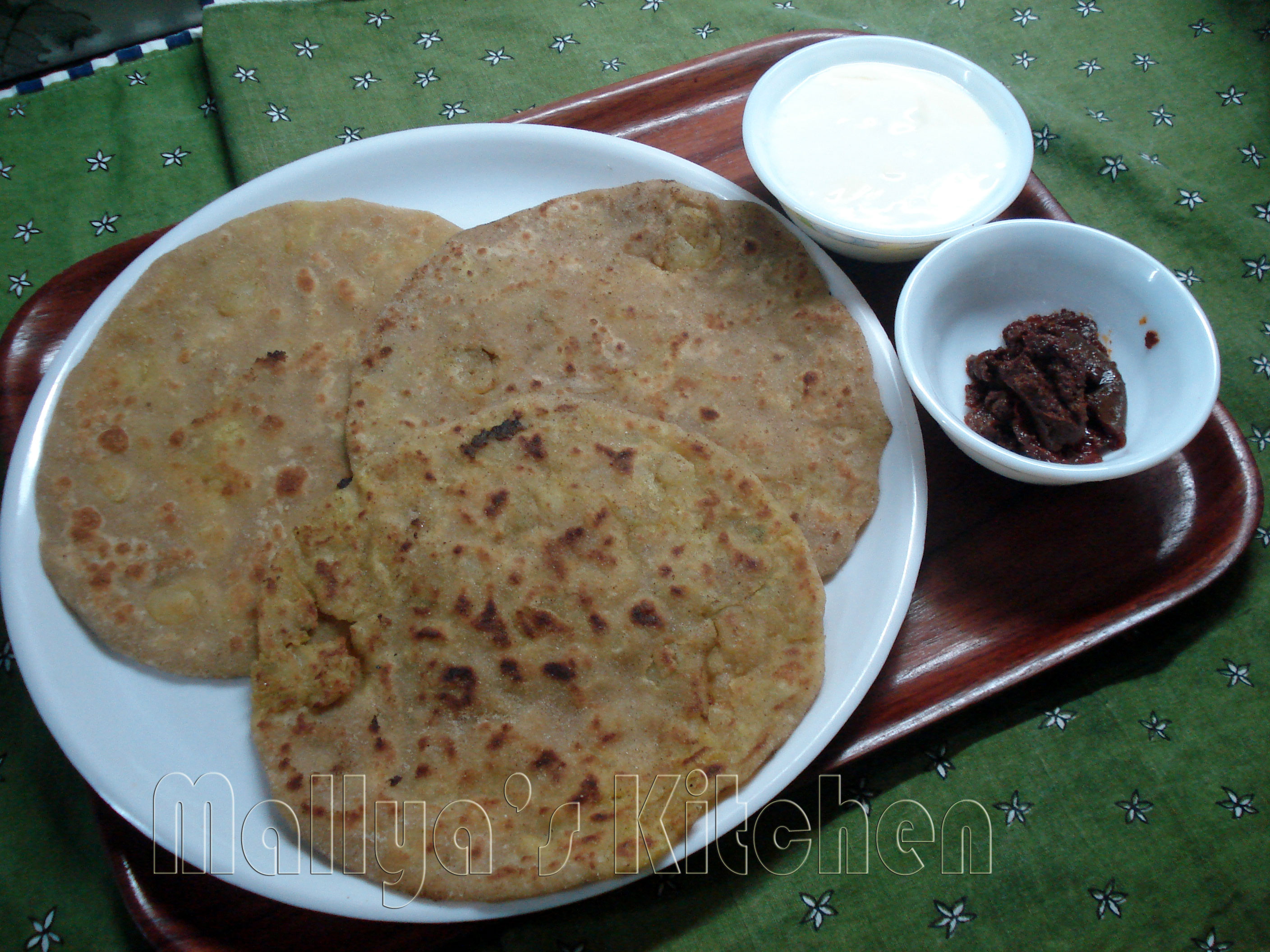 - Press and dredge in wheat flour and roll out into thick parathas.