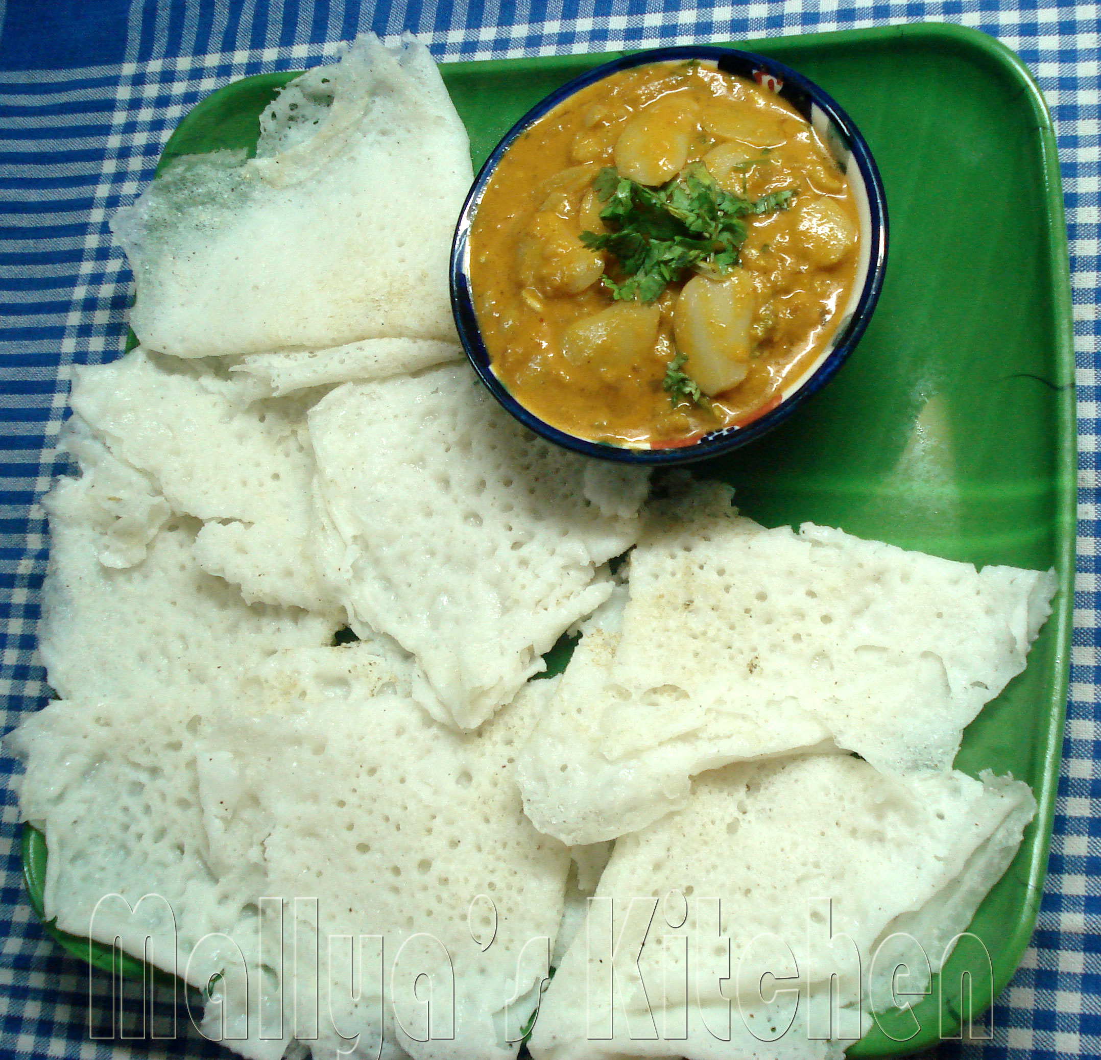 Pan polo is one of the popular breakfast dishes in South Canara. The consistency of the batter of this dosa is very watery, unlike other dosa, hence the name Neer Dosa. GSB konkanis use coconut in this dosa, others don’t , that is the only difference between pan polo and neer dosa.