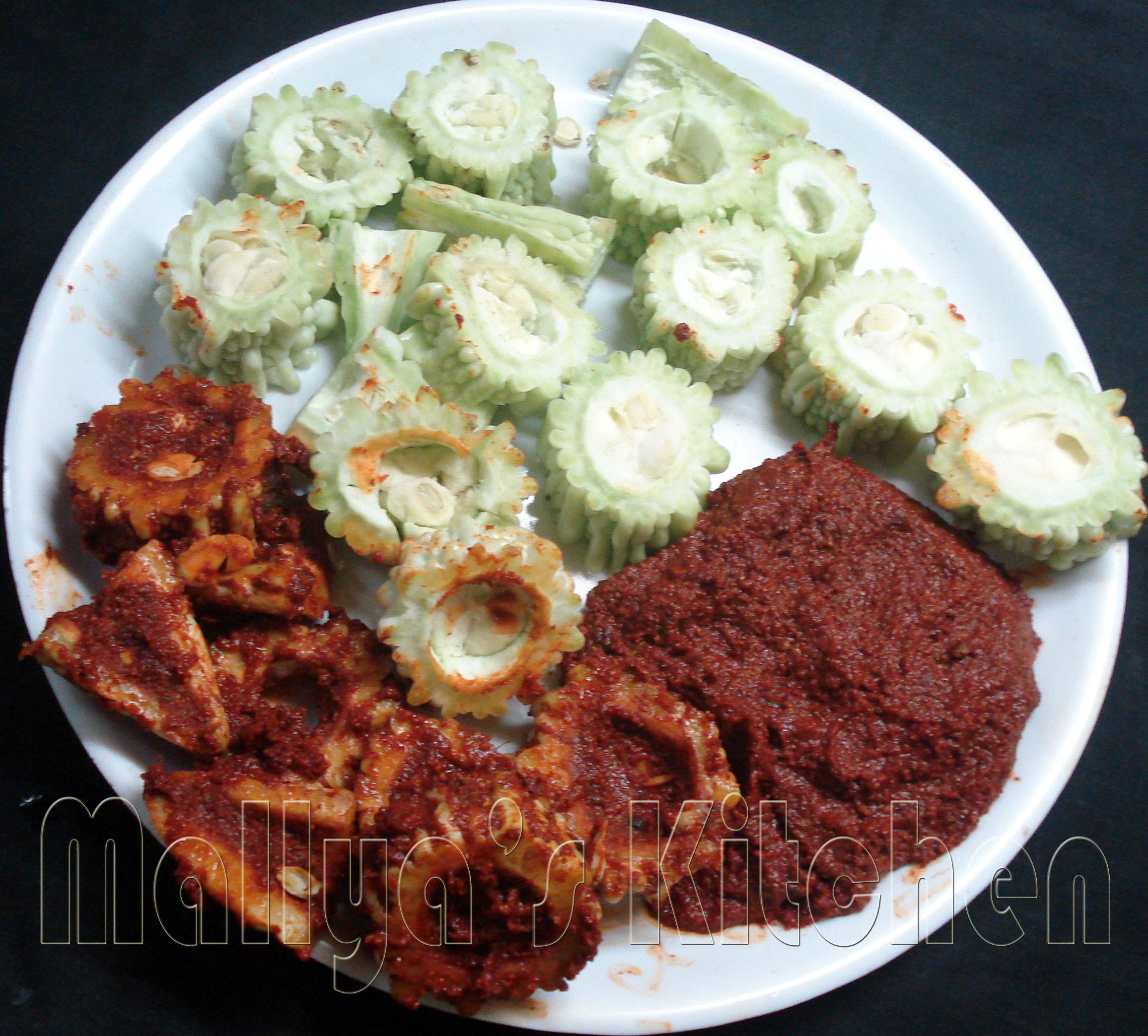 - Turn the bitter gourd pieces gently and fry till it becomes almost black in colour on all the sides evenly.
