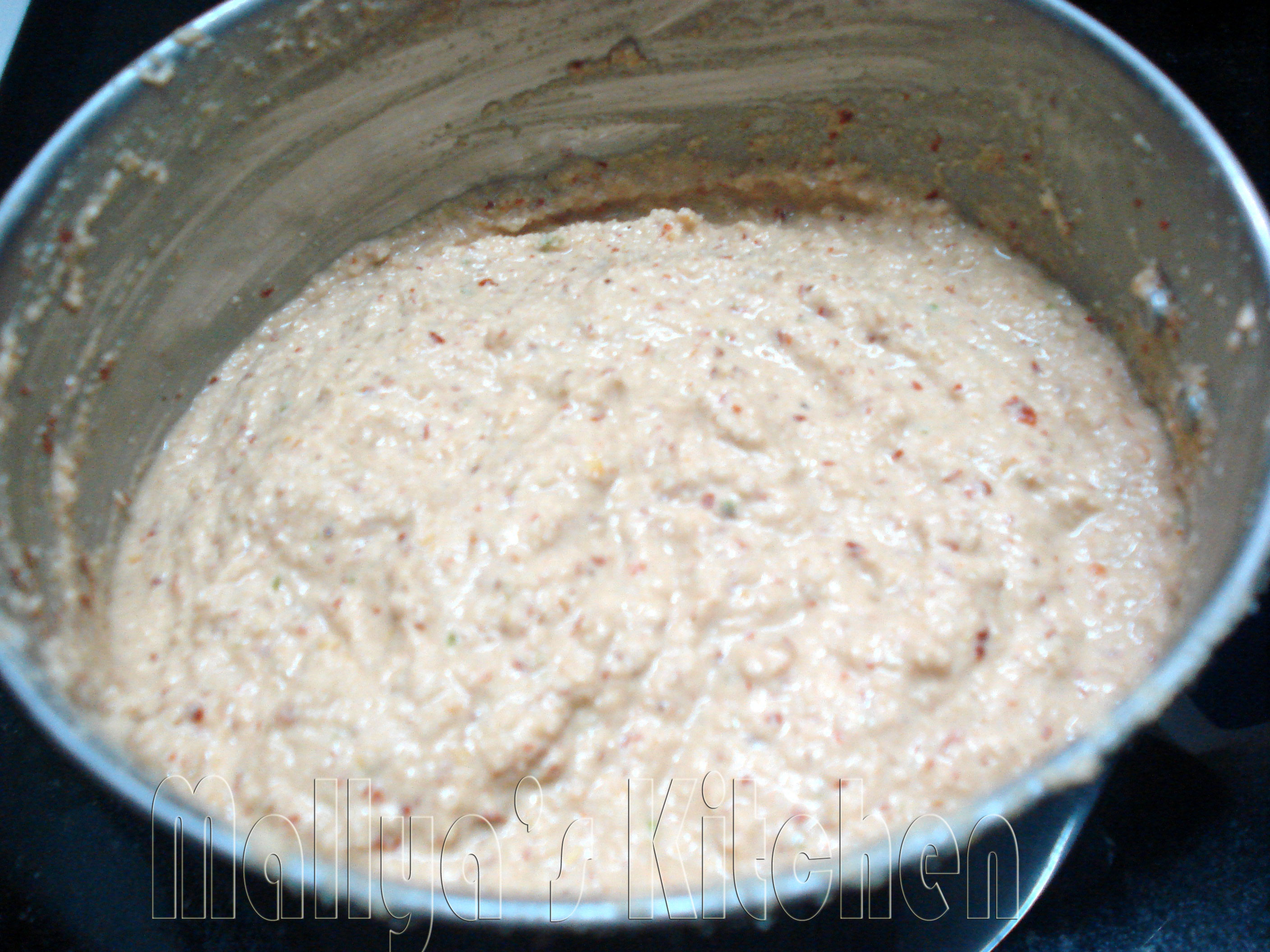 - Mix in the soaked rice and dhal ,grind till you get thick coarse paste.