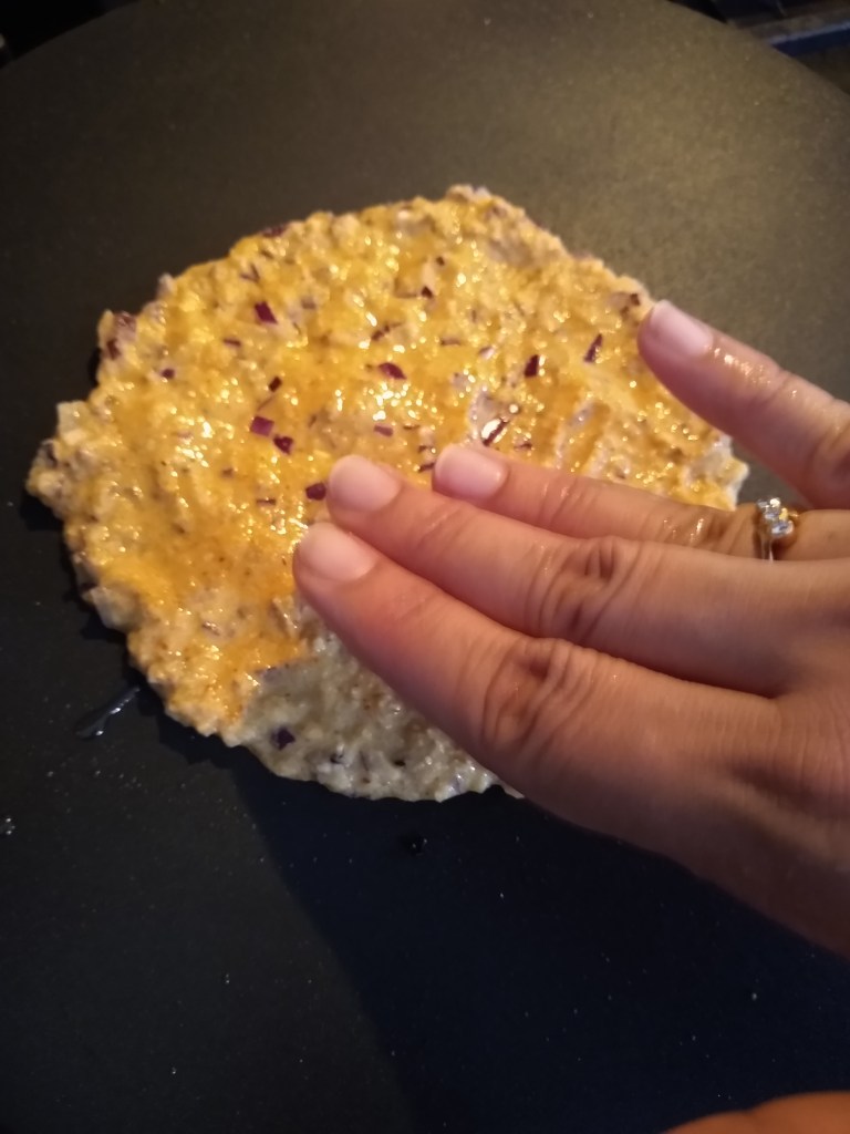 - Spread on a hot tawa, not too thin not too thick.