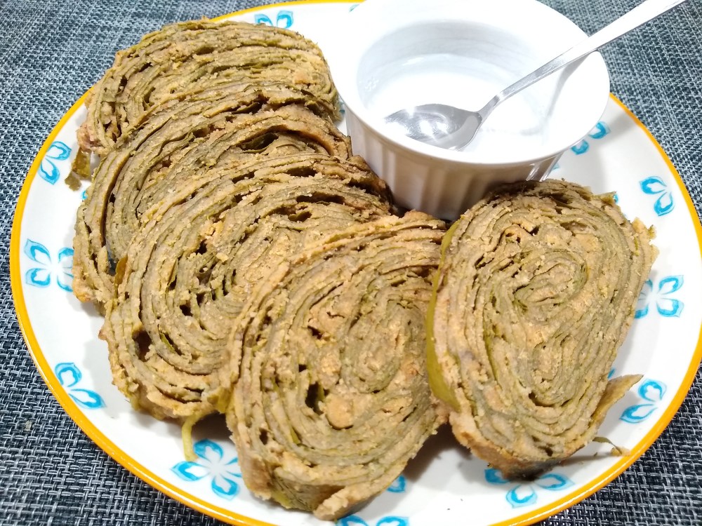 - Now the pathrodo lolo (loaf ) is ready to steam.