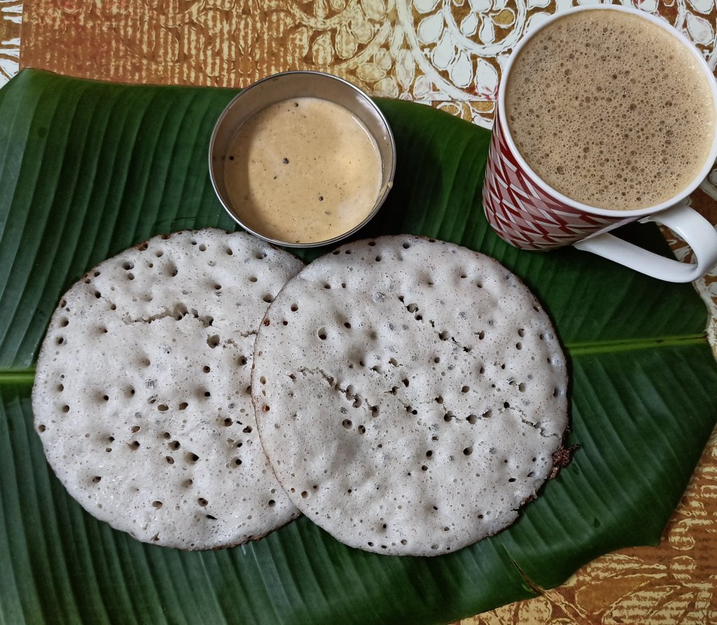 Musti means fist and polo means dosa in Konkani . A fistful of ingredients are used to prepare this dosa batter, hence the name Musti Polo . However I am using the cup measurement for ingredients here. This thick soft fluffy dosa is well paired with a red chutney made with hing (asafoetida).