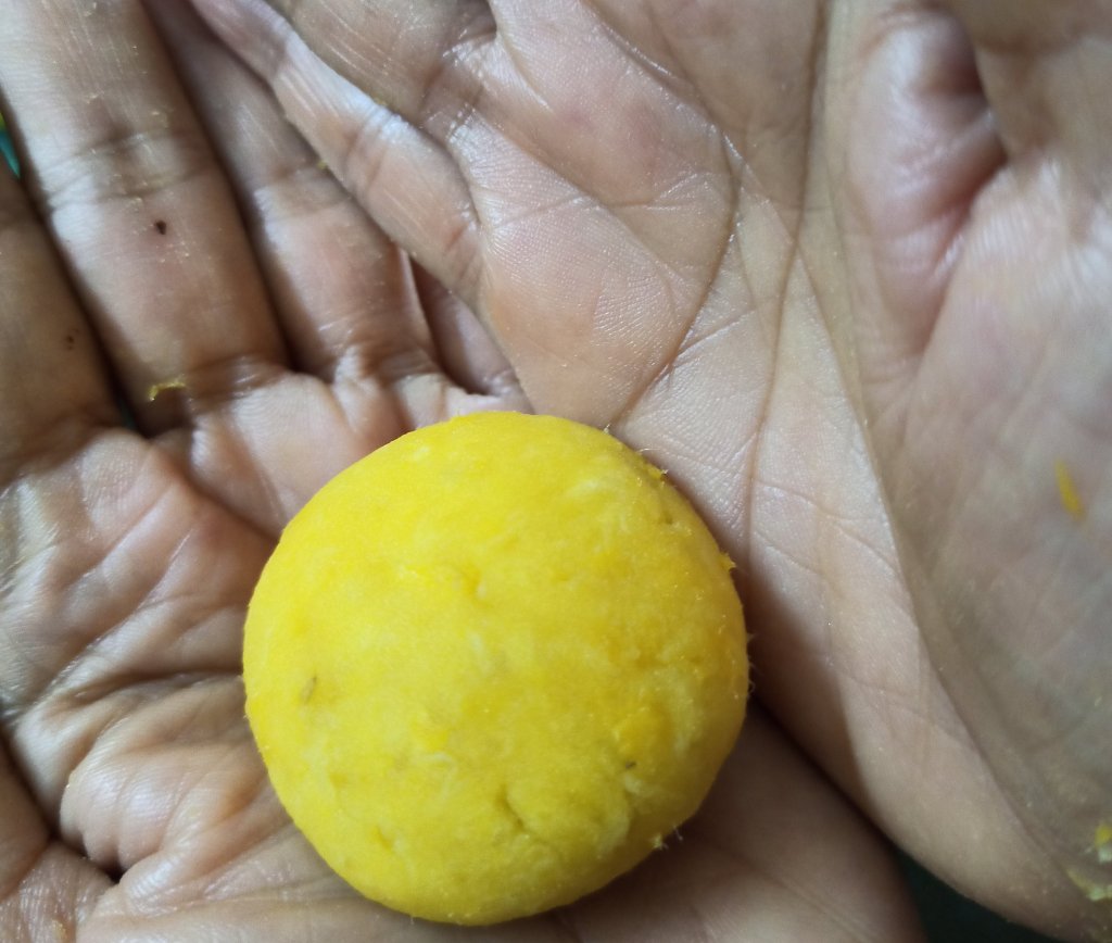 - Divide the banana mix in to evenly size balls