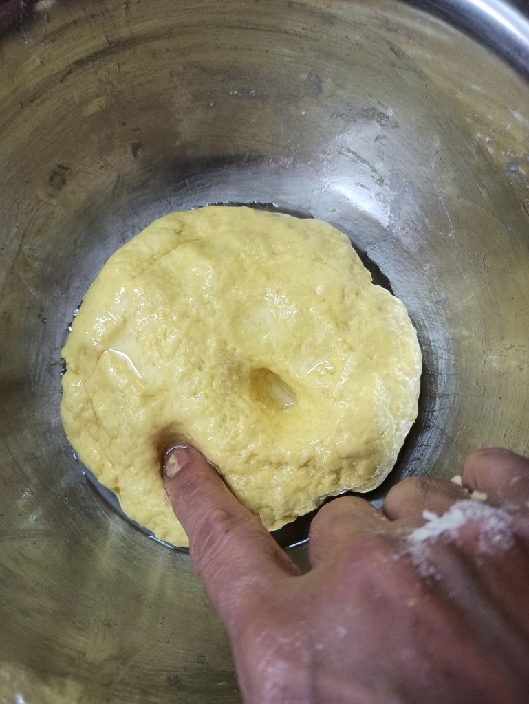 1 . In a mixing bowl add maida , salt and turmeric powder , mix it well . Now add water little by little and knead a soft pliable dough . Then add 1 table spoon of oil and knead again for 3 – 4 minutes . Add 1 table spoon oil over the dough and rest this in closed container for 1 – 2 hours .