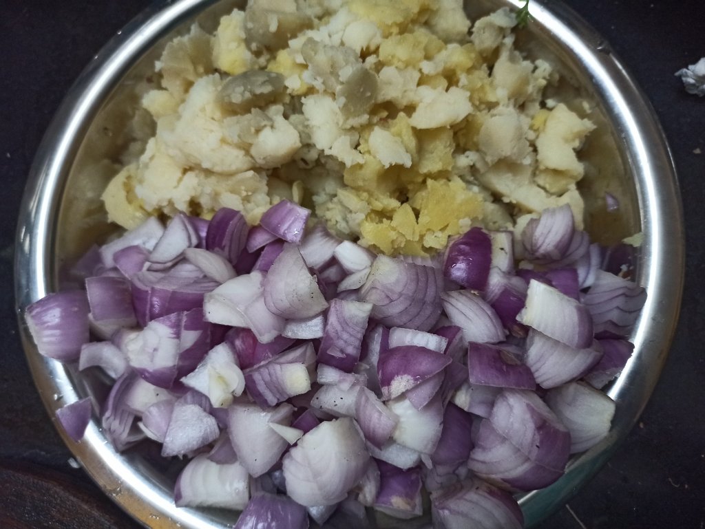 4. Peel the potatoes, roughly mash the potatoes with your hands in a bowl and keep aside .