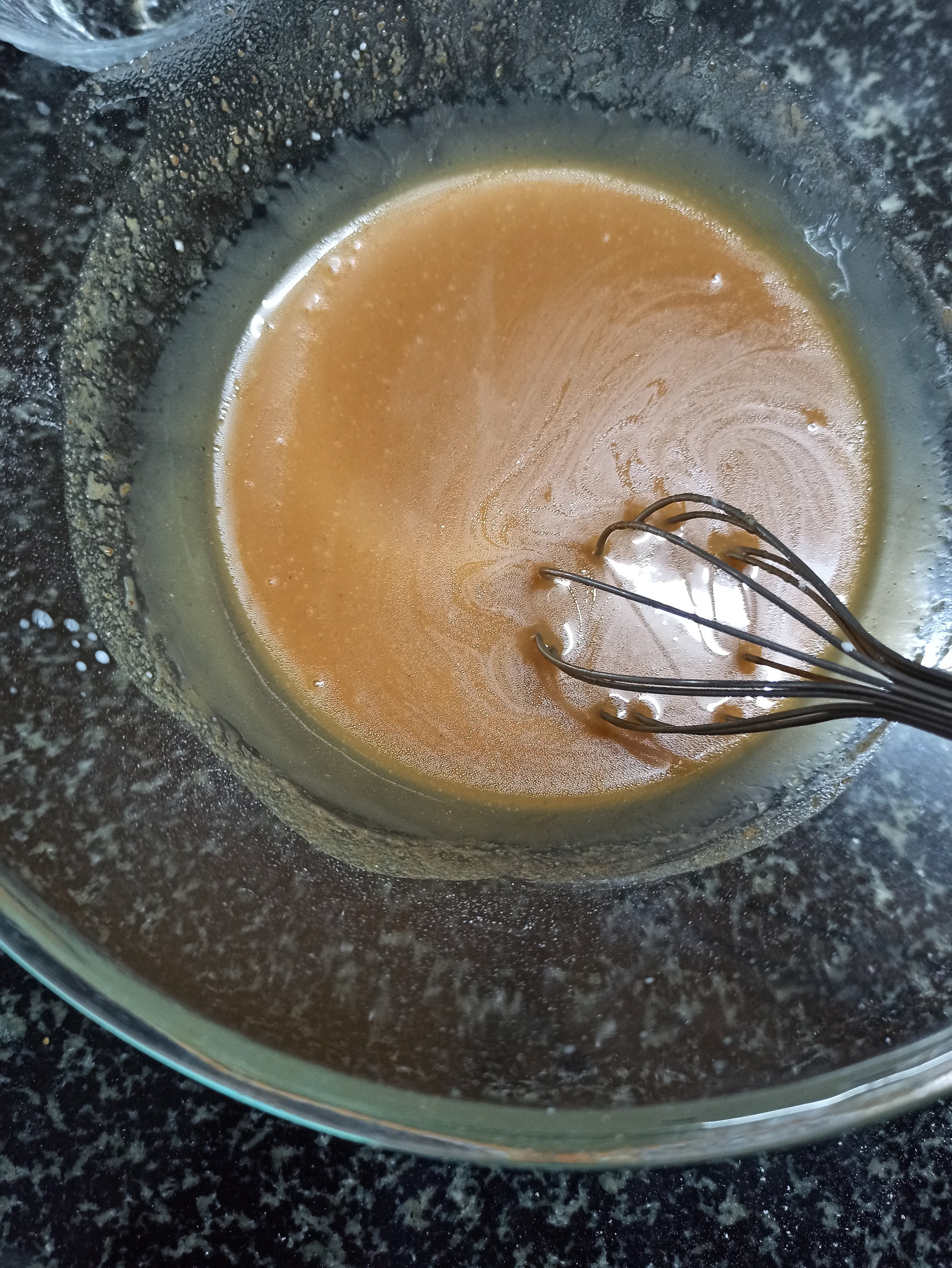 3 . Take a large mixing bowl add oil , curd and sugar powder , beat until it’s turn creamy .
