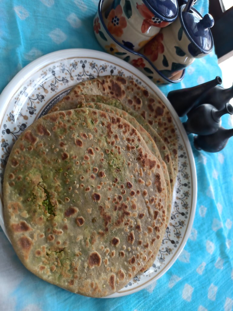 Parathas are Indian flat bread . There are so many variations and this version is stuffed with peas . Stuffed parathas are filling dish and taste great . This recipe of green peas paratha can be wonderful treat on breakfast table and having it in the lunch box of kids . It ensures good health to them for the simple reason that peas are quite nutritious and have ample of fibre and antioxidants .
