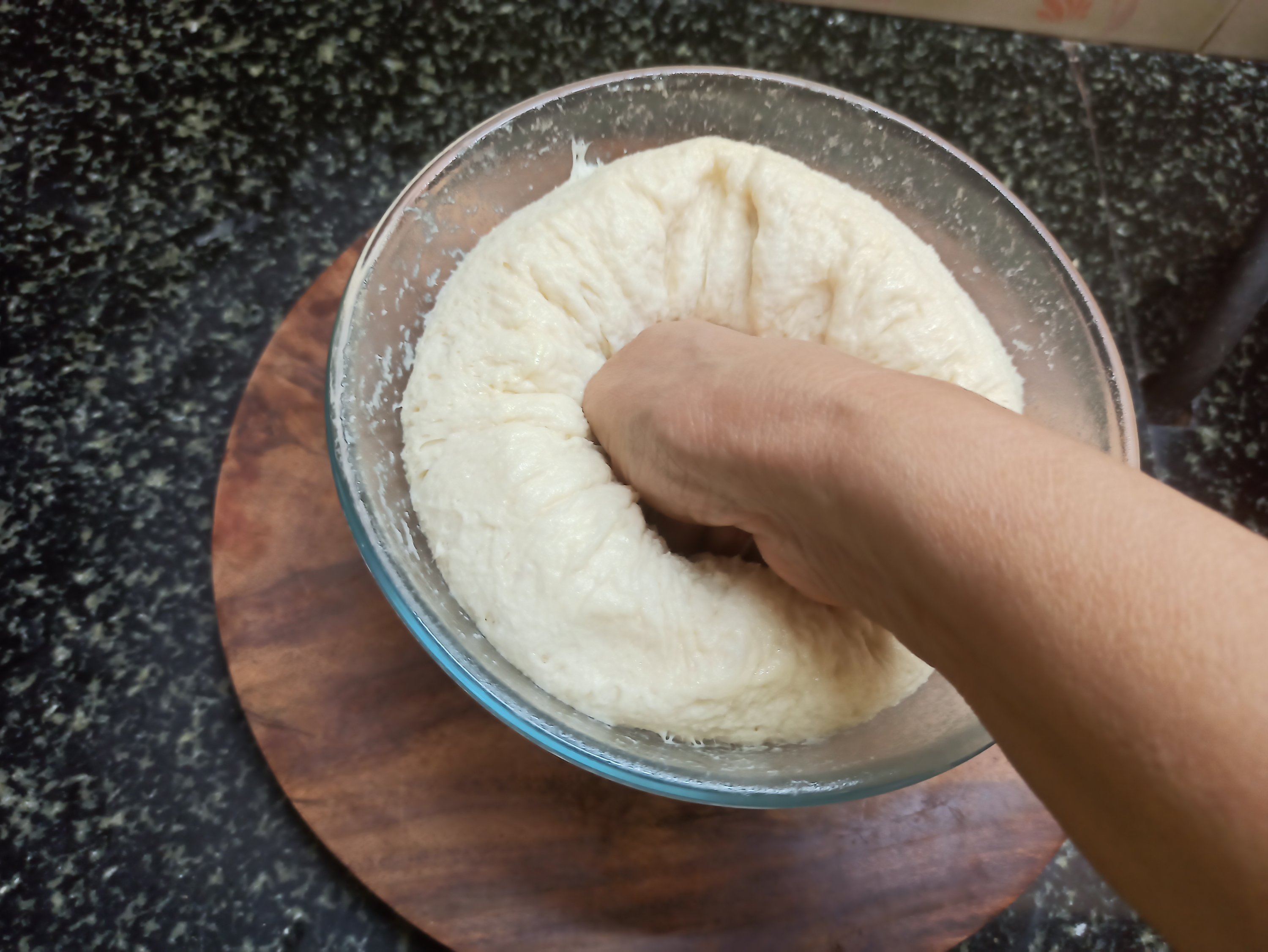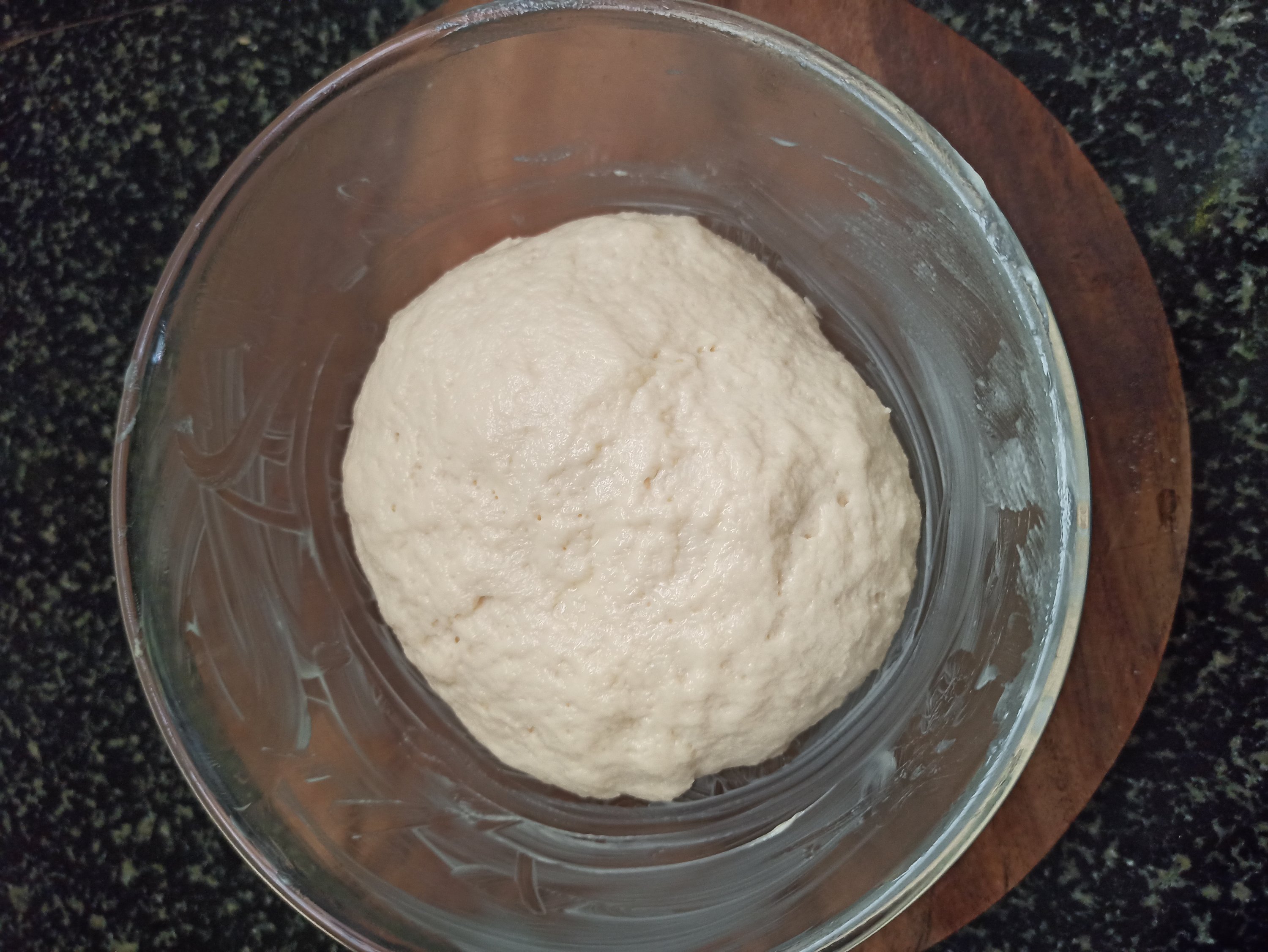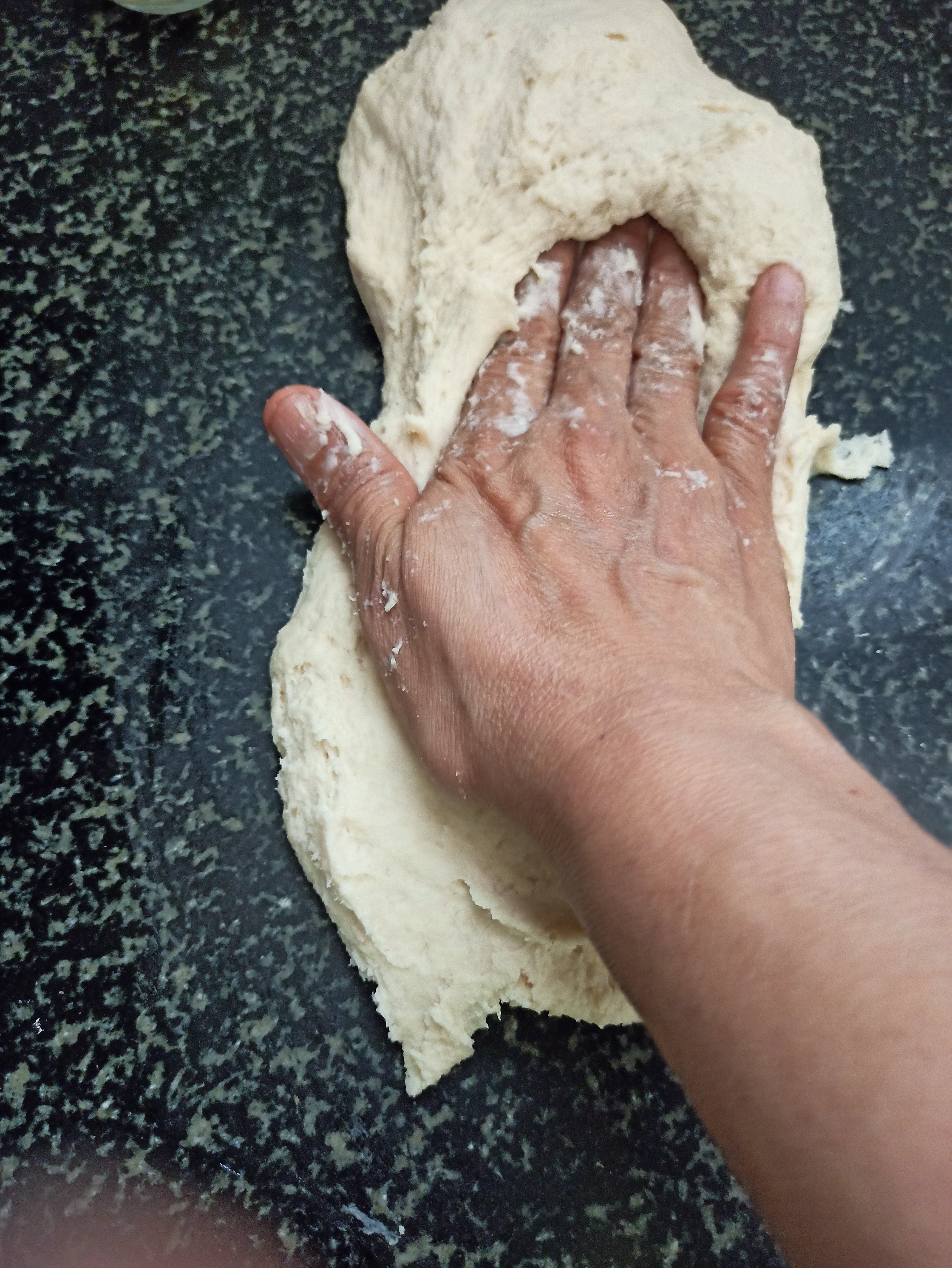 Knead it atleast 10 minutes . When it is properly kneaded the dough should be stretchy and smooth .