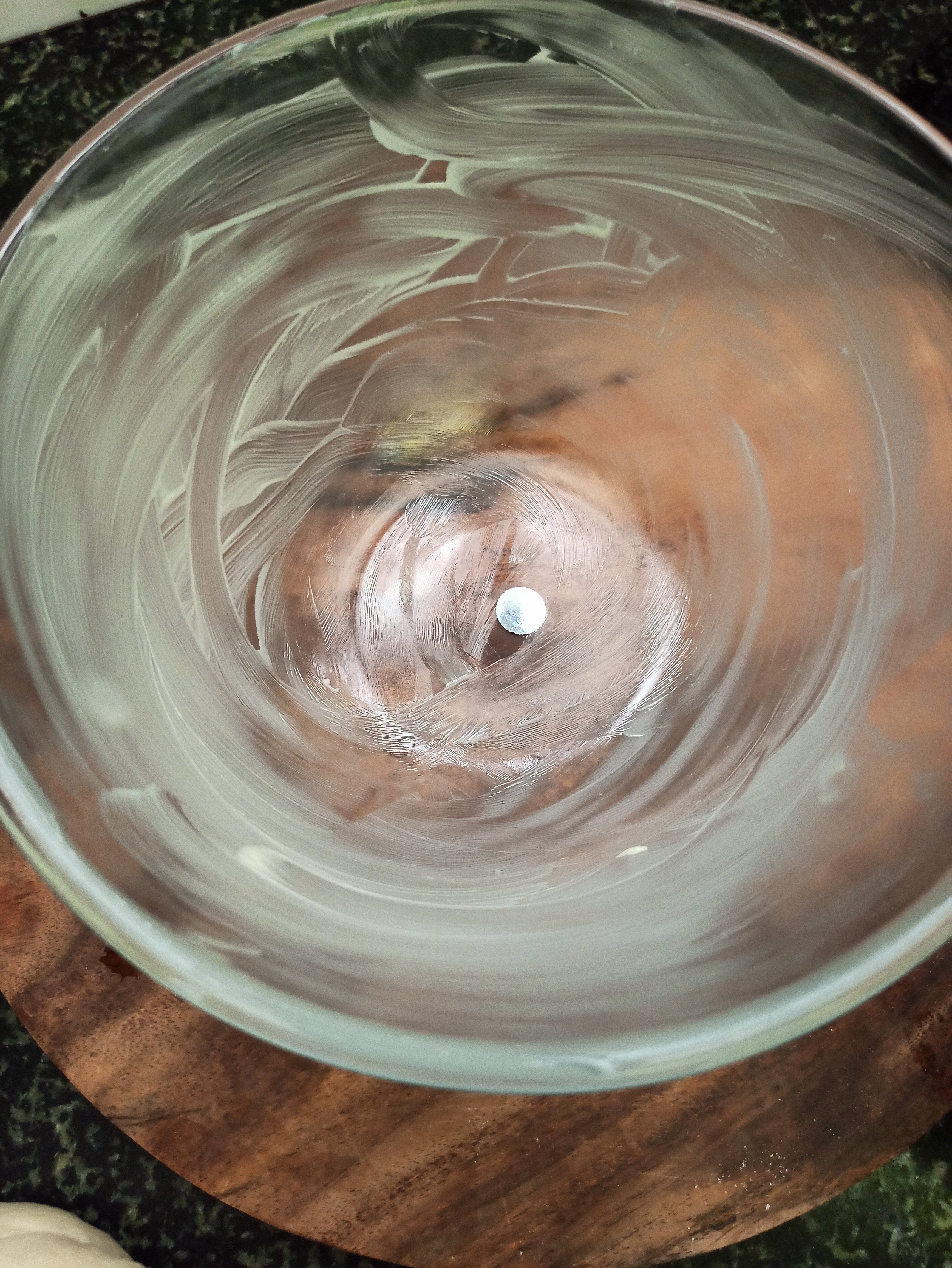 5 . Once the dough is kneaded well , keep it in a greased bowl . Brush some butter on the dough and cover it with a damp cloth and keep aside for rising for atleast one hour .