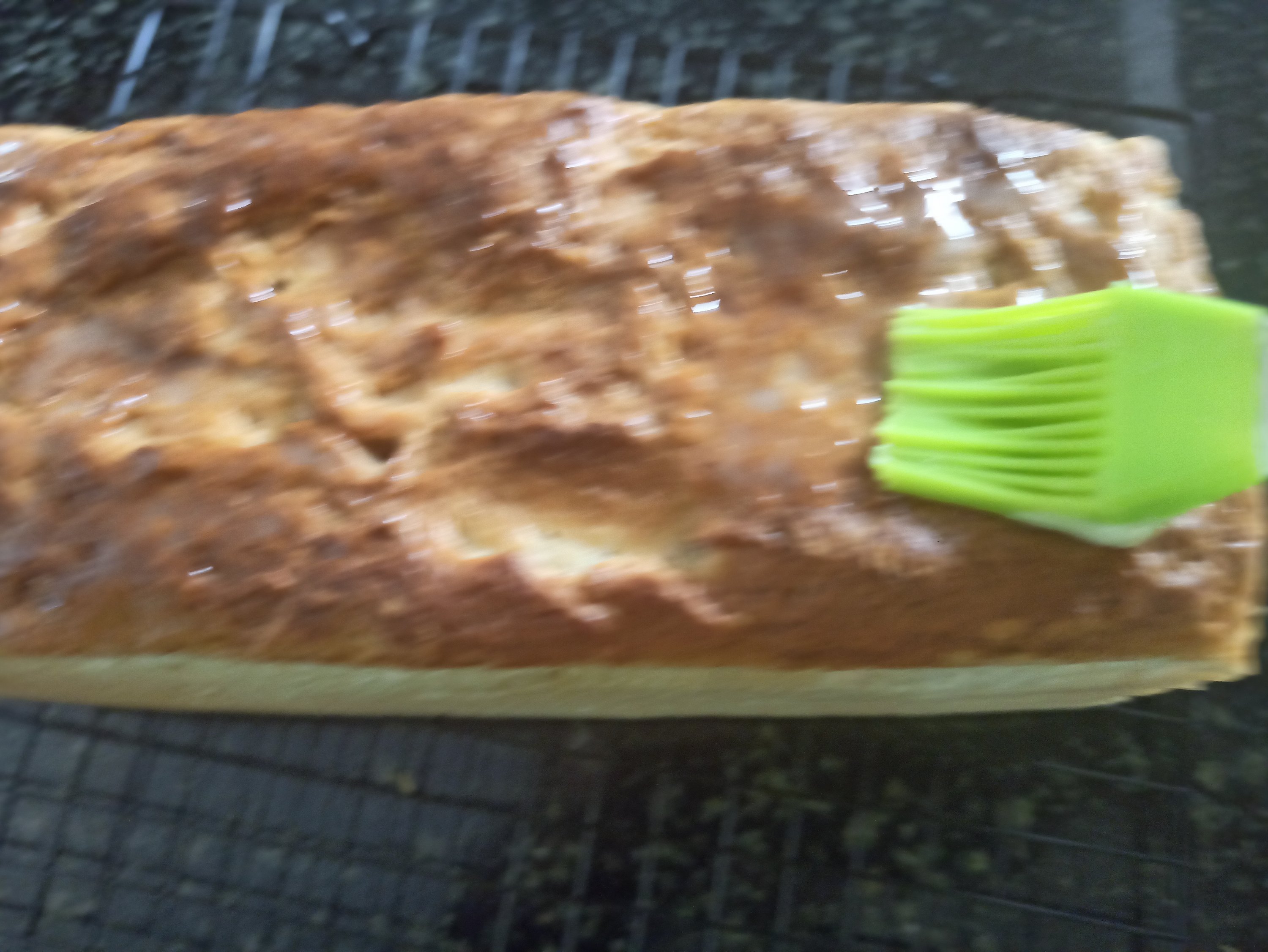 18 . Brush the upper surface of the loaf with butter .