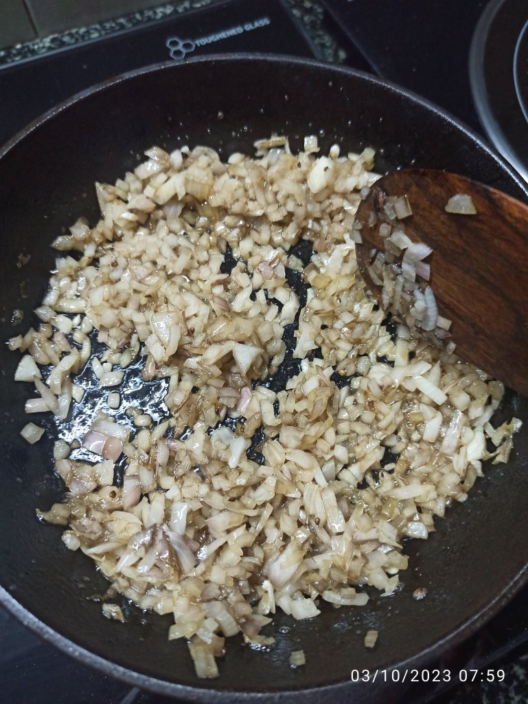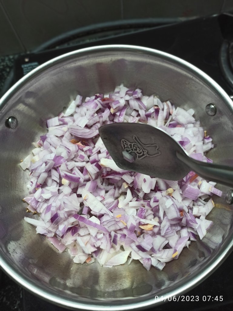 3 . Onion – 2 -3 midium sized (chopped ) .