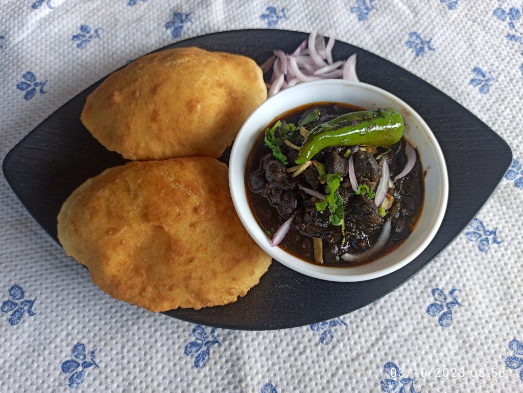 22 . Serve hot with Bhatura or Kulcha or Naan along with some slices of onion and lemon .