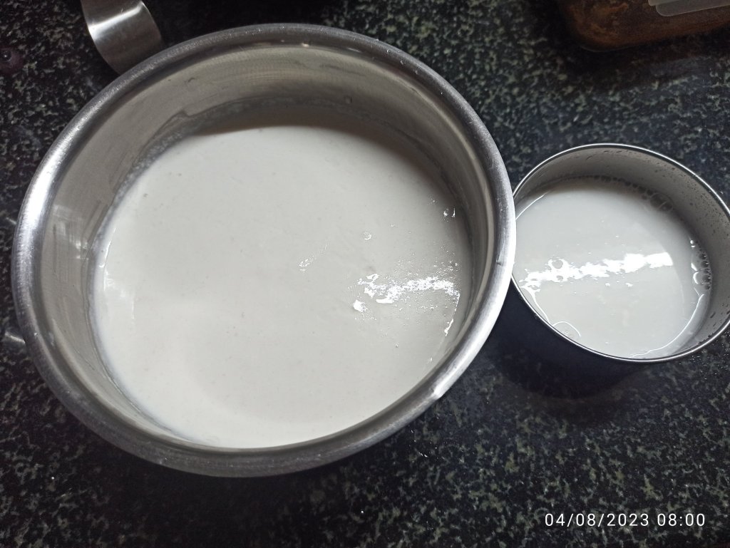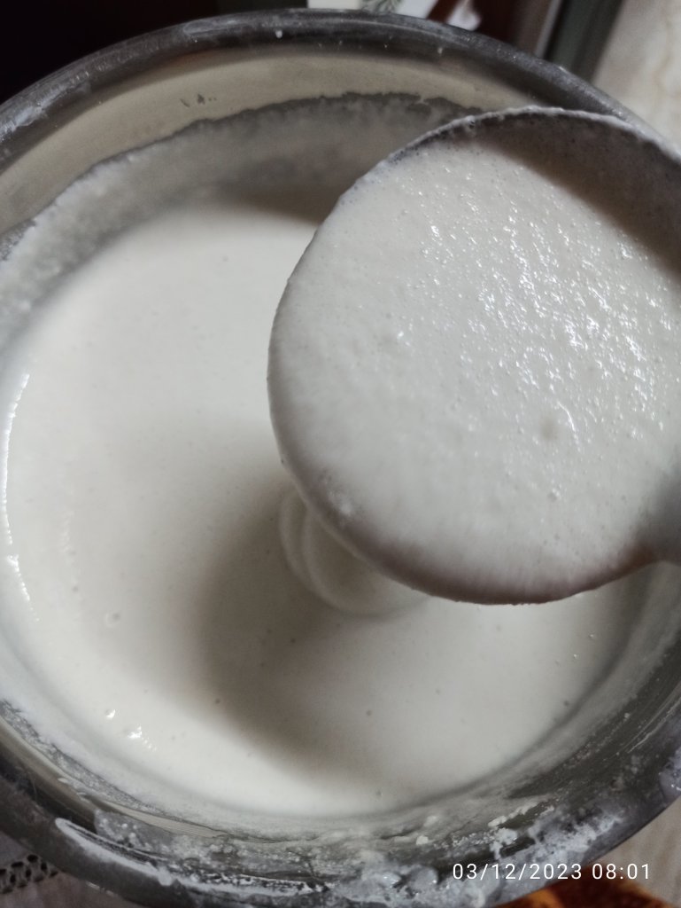 6 . Do not be tempted to add more water to the batter while grinding the ingredients and also keep the batter slightly thick for fermenting. Keep separate the grinder washed water . ( If the batter is too thick you can add this water to the batter next day ) .