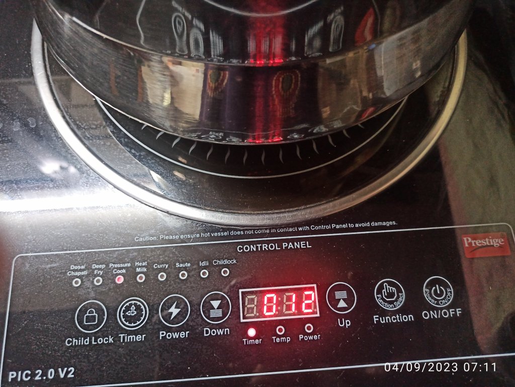 12 . Set the idli stand in the steamer and close the lid . If you are using pressure cooker do not put the cooker weight on .