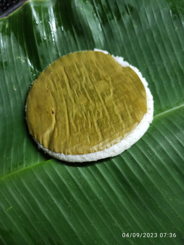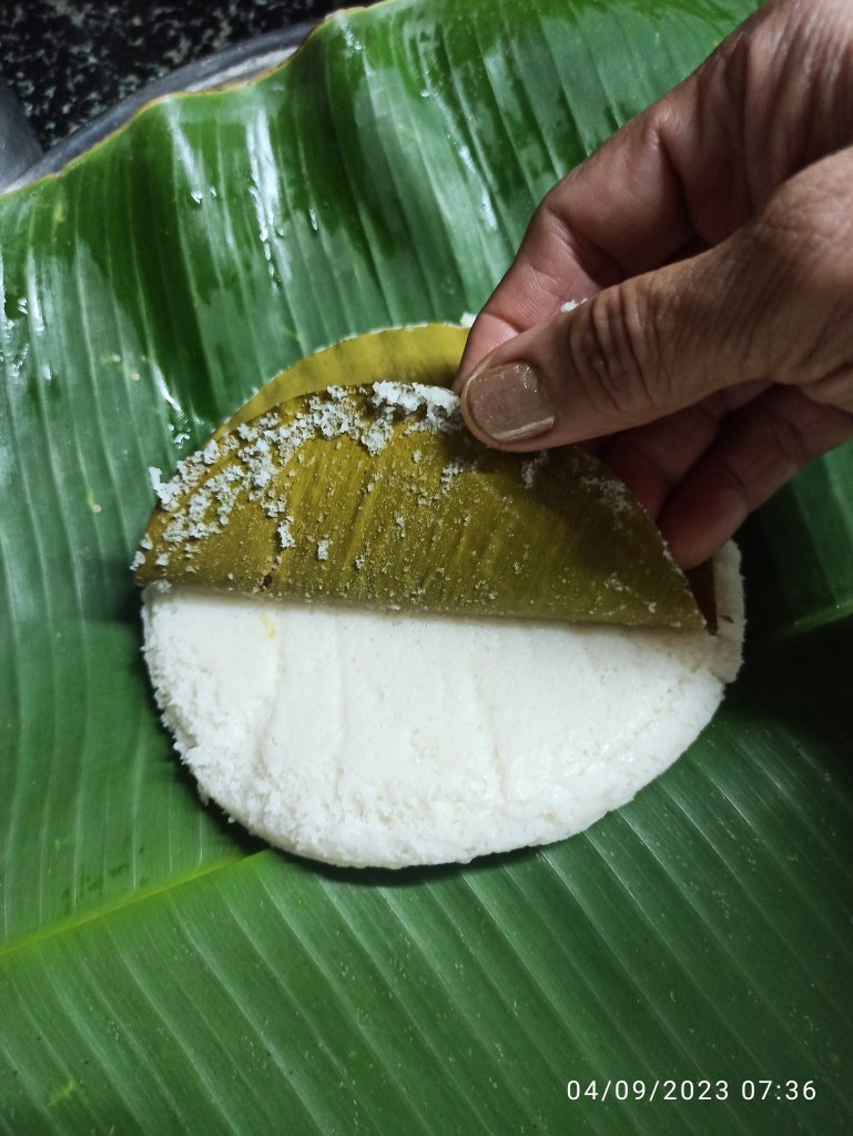 9 . Set the idli steamer with enough water on medium heat. Mean while brush the idli plate with drop of oil all over or place some banana leaves over the plate .